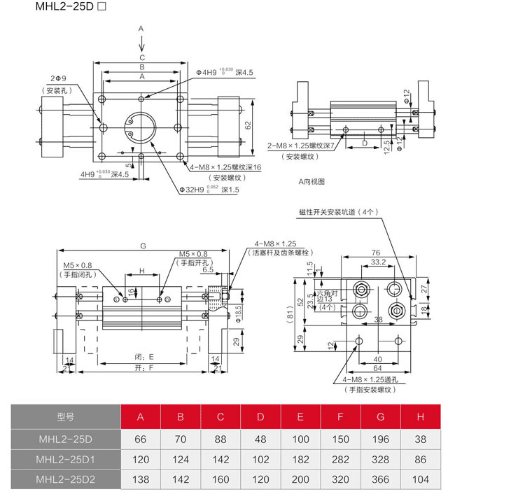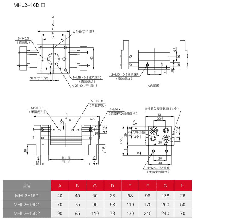 MHL2系列闊型氣缸手指缸